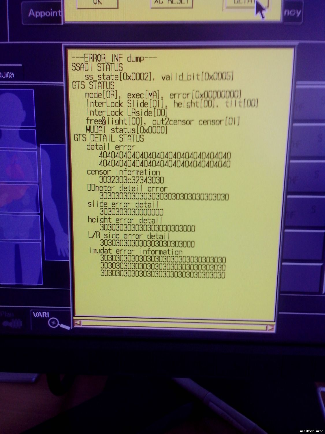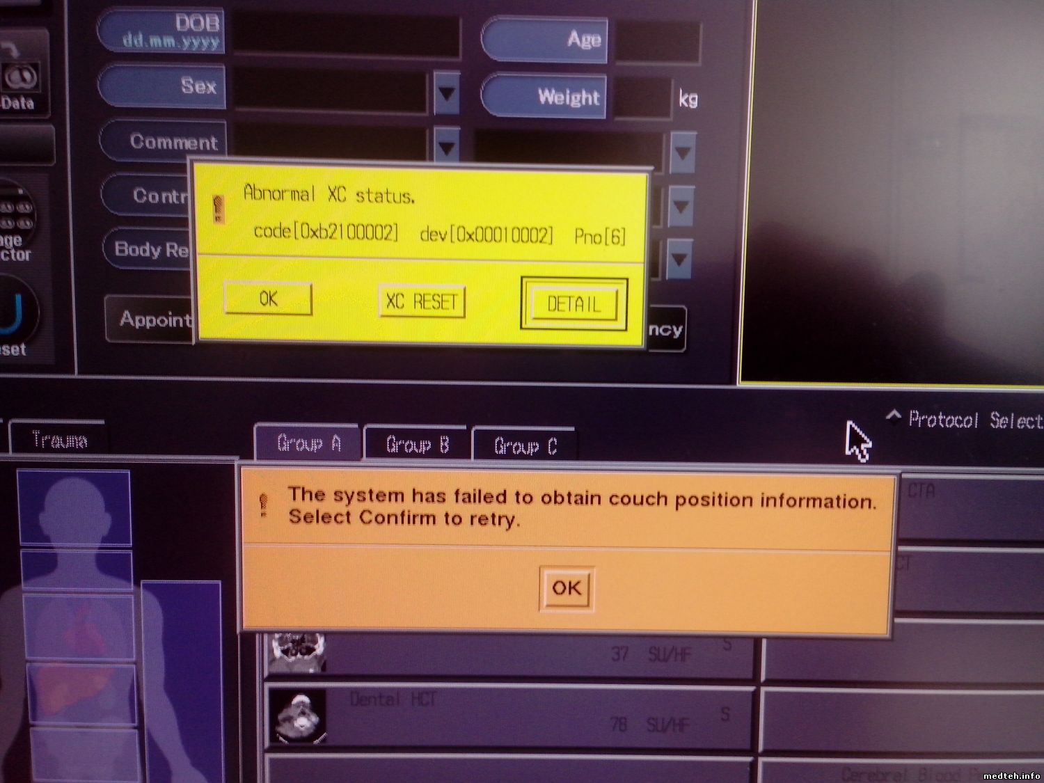 Здравствуйте всем! Есть проблемный томограф Aquilion 64. Фотографии ошибок в файлах. Ошибка появляется в конце загрузки аппарата. Появилась утром после первичного включения аппарата. Перезагрузка и прочие reset не помогают. Мануалов не было поэтому только проверили наличие 3 фаз на вводе в Гентри. Там между фазами 202 В. Понимаю так это в норме. Сейчас нашли мануалы. Там есть алгоритм ( см. файл). Судя по нему все как то очень печально. Или проблемы в кабелях и разъемах, что вряд ли или замена HV unit, или SCB PWB. Опыта работы с Тошибой нет. Может кто что подскажет из опыта или логики ошибки перед очередной "встречей" с аппаратом. Заранее спасибо!