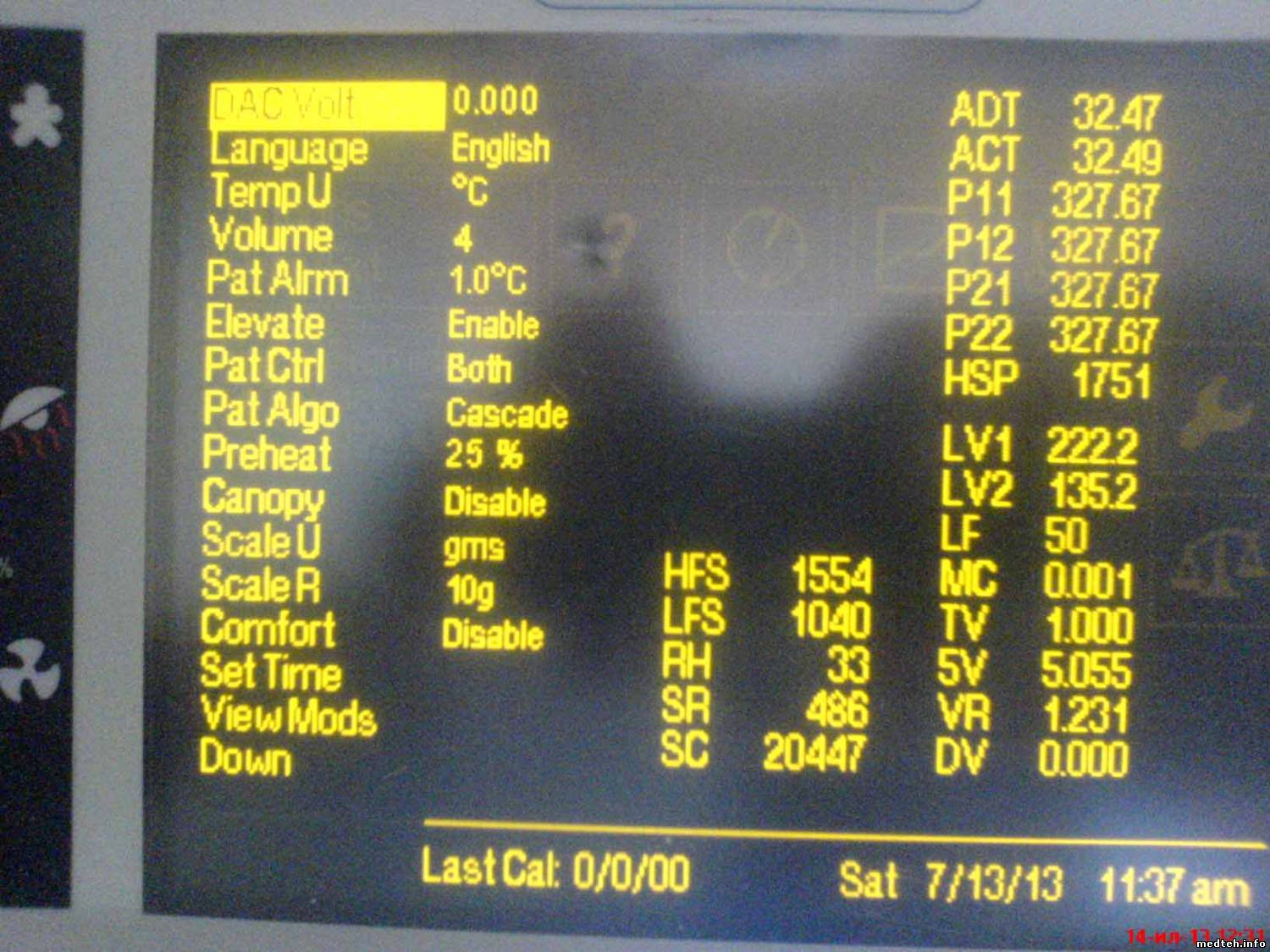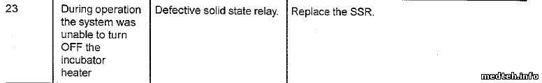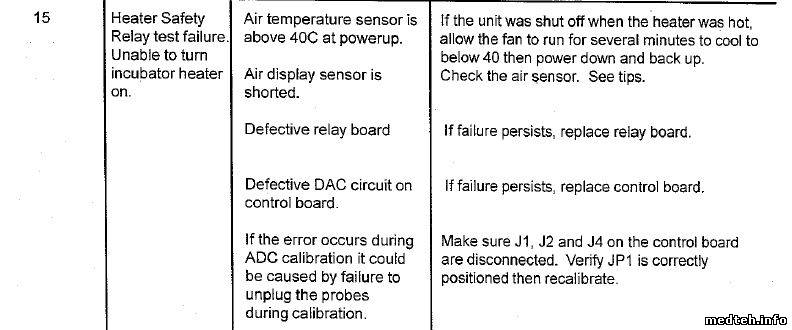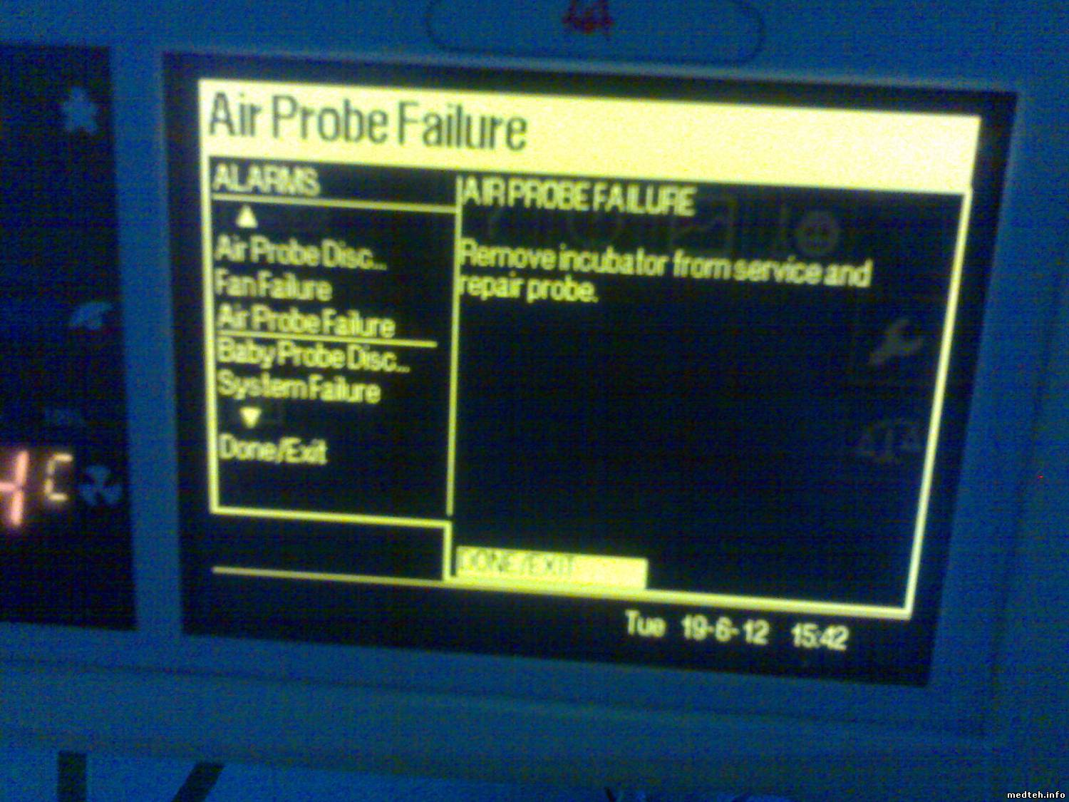 после включения выдаётся тревога"Air Probe Failure" т.е. "Отказ Воздушного Датчика" и даётся рекомендация "Remove incubator from service and repair probe" т.е. "Удалите инкубатор из обслуживавния и отремонтируйте датчик". Воздушный датчик на кювезе исправен(выдаётся правильная температура и реагирует на нагрев рукой), нагреватели исправны, твёрдотельное реле исправно, напряжение перед реле 115, нет напряжения на управляющих контактах (появляется 11В два раза на одну секунду при включении, наверно самотестирование) ВОПРОС: ЕСТЬ-ЛИ ЕЩЁ ВОЗДУШНЫЙ ДАТЧИК , НАПРИМЕР ВОЗЛЕ НАГРЕВАТЕЛЯ? И ЧТО С НИМ МОГЛО ПРОИЗОЙТИ??