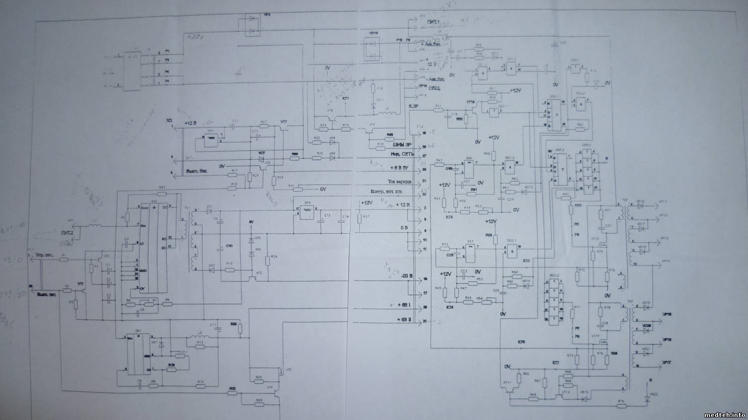 Поступил в работу дефибриллятор. Проблема - не набирает заряд при нажатии кнопки "ЗАРЯД". На экране отображается сообщение "нет контакта". VD20, VD21 проверил. Кто нибудь сталкивался?