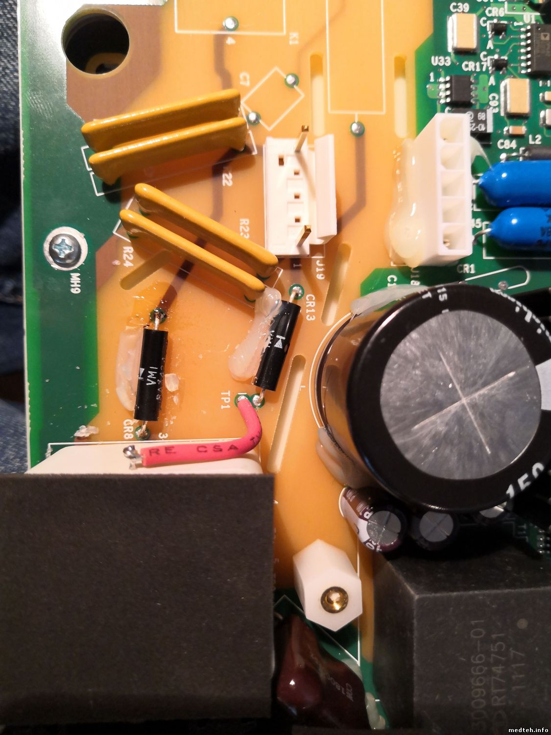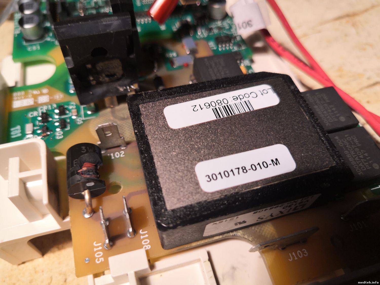 В монитор-дефибрилляторе Lifepack 15 производства компании Physio-Control, Inc, США, перестал заряжаться конденсатор. При нажатии "Заряд" на дисплее пустая шкала заряда. User test не проходит. Лог:A021,1006. Выходит неисправен блок терапии А04, на котором и находится зарядное. Проверка элементов показала 2-а диода после трансформатора в обрыве. Но странно, что сразу 2-а. На диоды не могу найти даташиты. Их наименование VM1 RA3424. Коллеги, кто-нибудь имел дело с такими диодами? Какие аналоги подойдут? ...