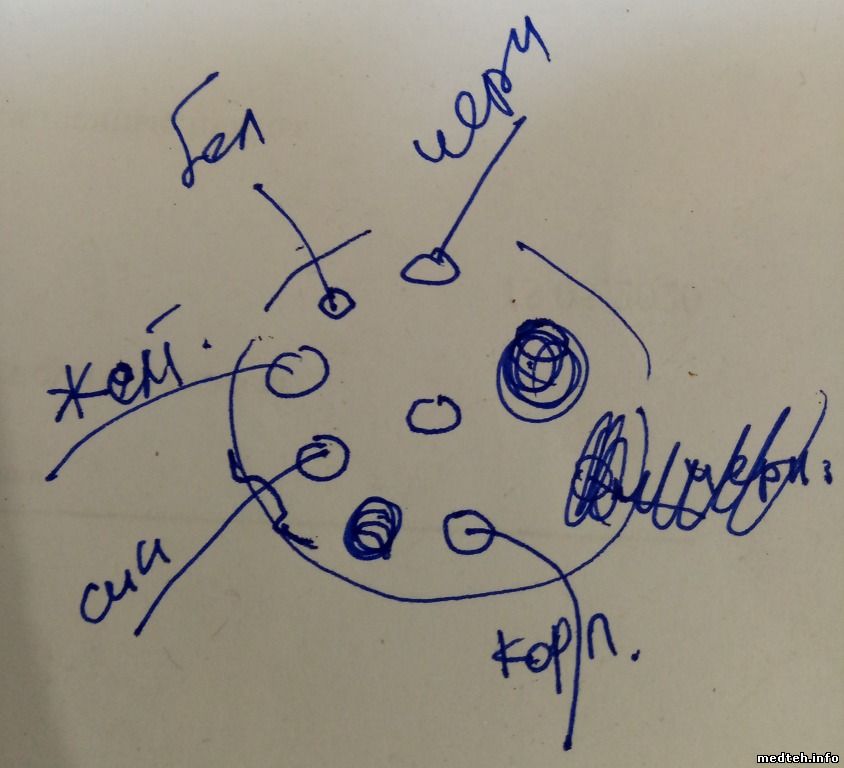 Здравствуйте. Может есть распиновка разьема модуля газоанализатора дых. смеси ТЭСМ 506001 ВЫП. 19-09Г. Девочки оторвали. 5 концов, один корпус который понятно где припаять, кембрики 4шт. и все, провода торчт из кабеля :бел, желт,син, черн, корп. ANDRY