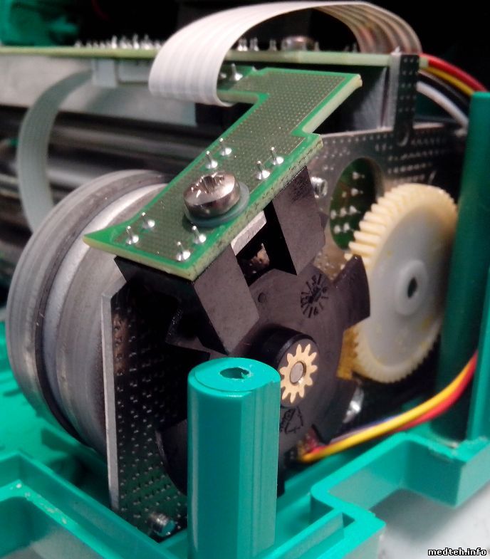 Рукой докрутил за шаговый двигатель до упора где стоят три датчика на верхней плате.Затем включаю аппарат и по одному лепестку ,что на шаговом двигателе подкручиваю двигатель в обратную сторону.И так по одному лепестку кручу до тех пор пока при очередном включении не будет ошибки 046 и визжать авария