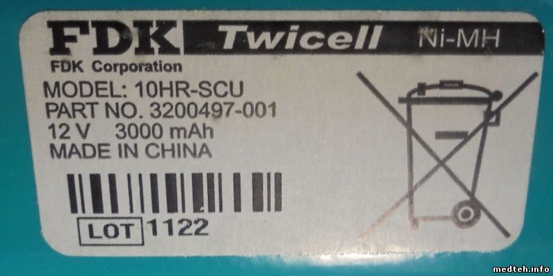 Питание прибора обеспечивается никель-металлгидридной батареей или подключением к сети 220 В. При работе в автономном режиме батарея обеспечивает до 90 бифазных разрядов по 360 Дж или 120 минут непрерывного мониторинга ЭКГ. Предположительно замена батареи. .
