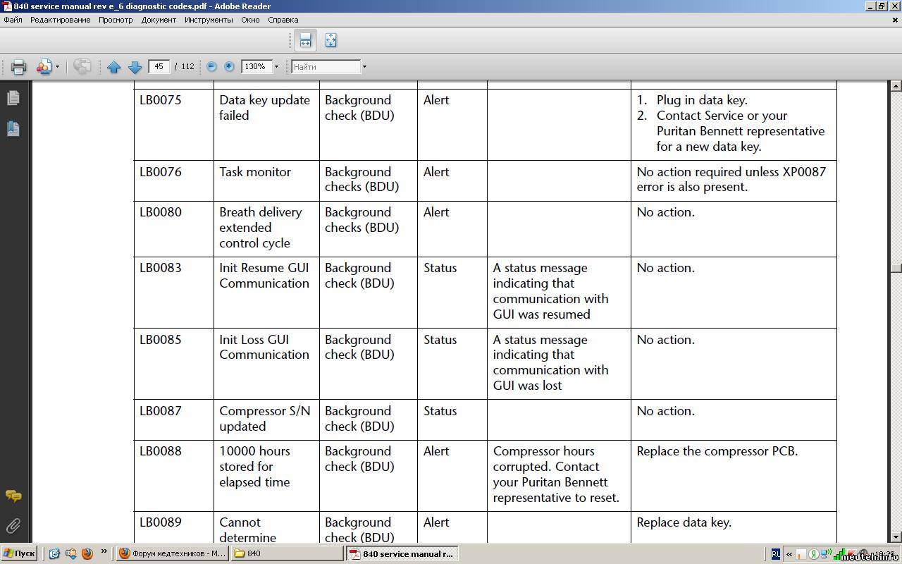 Аппарат при включении не проходит короткий тест. diagnostic Log ----LP0121 information Log ----ZB0084 -----LB0083 Компрессор не включается. Аппарат пищит--ошибка высокого приоритета. Как его победить. Может есть сервисная документация посмотрите что за ошибки и за что отвечают.