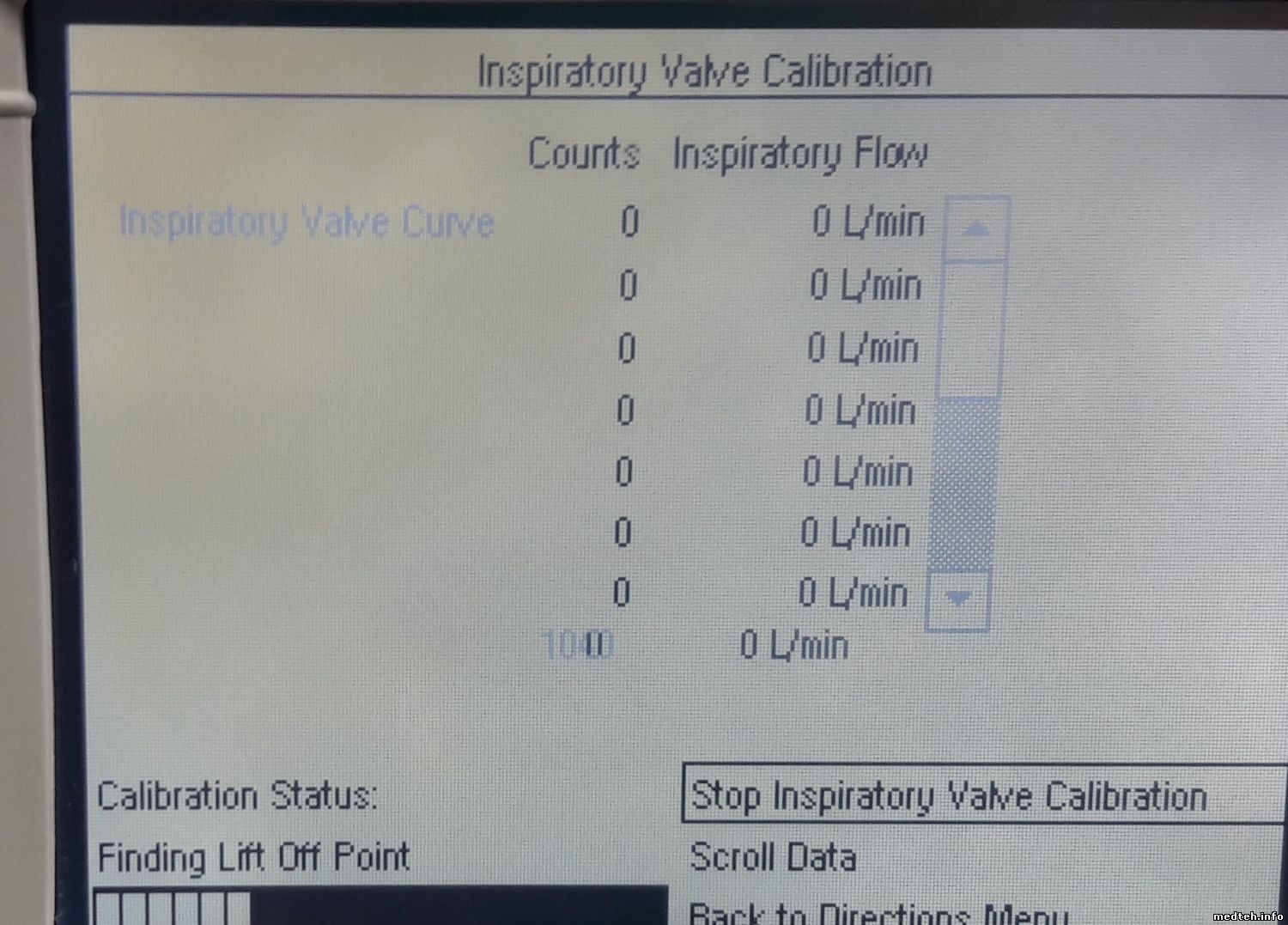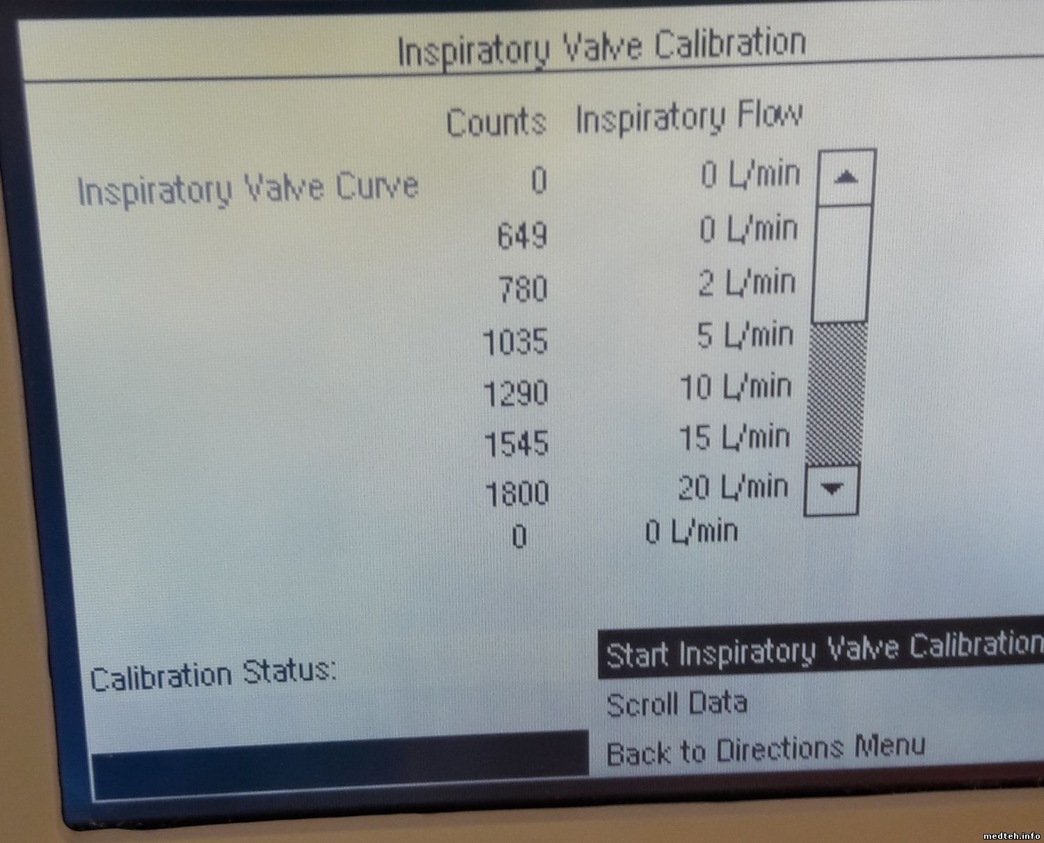 Всем доброго времени суток! Подскажите пожалуйста, есть ли у кого информация по калибровке данного зверя особенно этап Inspiratory Valve Calibration который у меня не проходит.А не проходит этап по причине что в момент калибровки поток не чувствует аппаратом, циклично проверяет значение counts, но значения insp flow нет.Также что бы задать нужное давление на этапе калибровки приходится нажимать кнопку подачи кислорода, что я считаю не правильным, но иного способа создания давления 1.05 CmH2O нет.