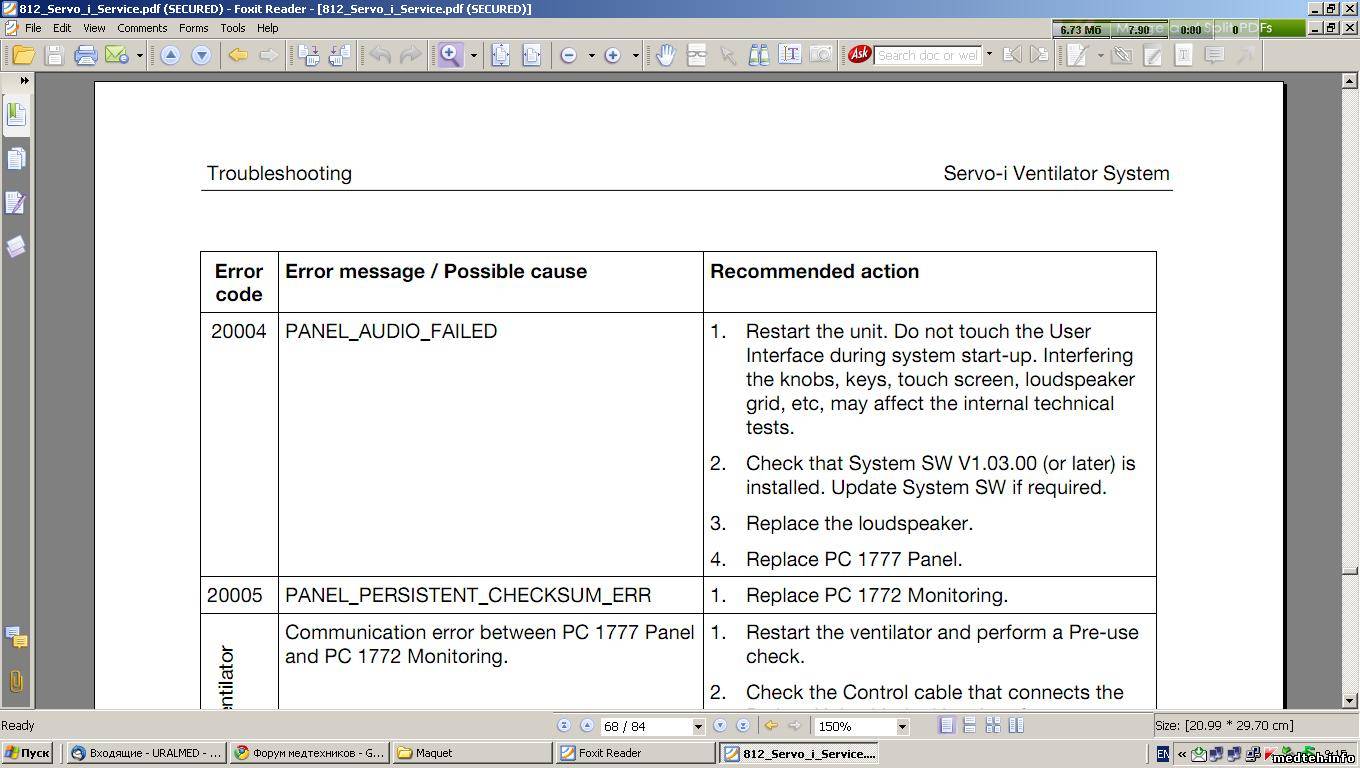 - ИВЛ Servo-i ф.Maquet (Швеция) (Неполадки/проблемы, опыт и советы по их устранению);