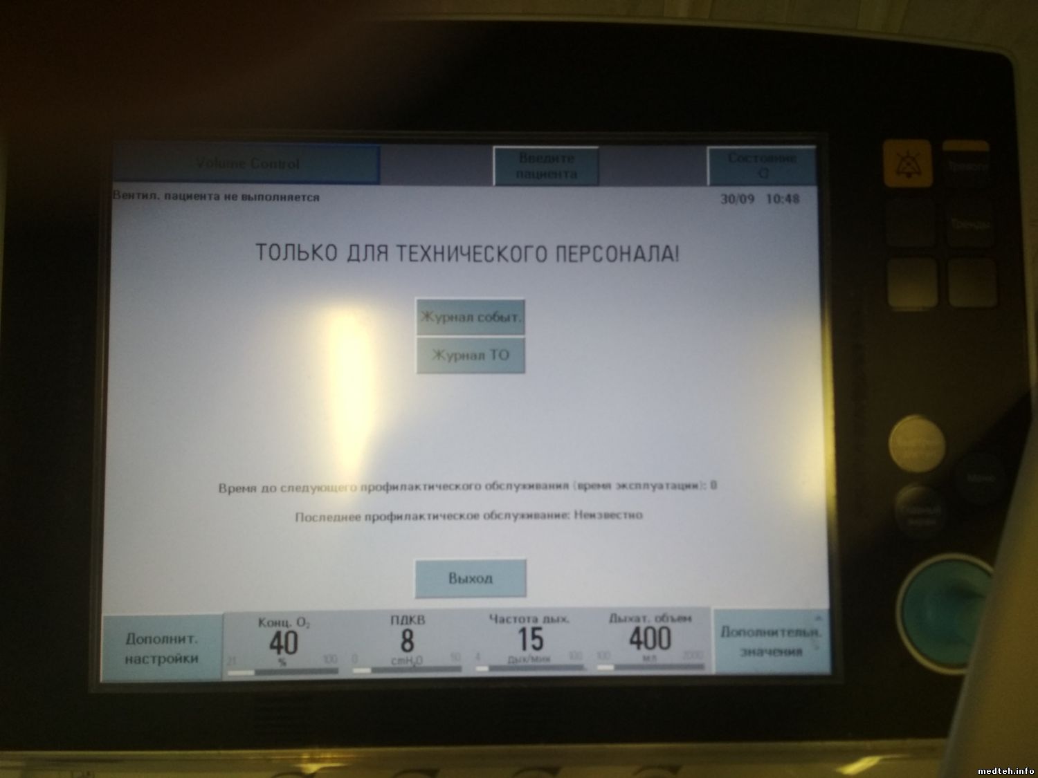 Коллеги, доброго времени суток! В Servo S заменил комплект 5000 часов, и не могу найти кнопку для ввода даты ТО! В меню biomed => Service отсутствуют кнопки ReportPM (Отчет о ТО) и Replaced Exp Membrane (забыл сфотографировать экран). Там только две кнопки - EventLog и ServiceLog. Потом просто текстом написано, что до ТО 0 часов. И Всё. В Servo U сброс сделал без проблем, а с Servo S вот такая вот проблема ... . Может кто сталкивал с этим?