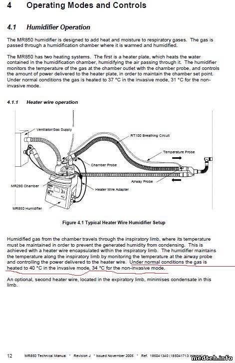 Проблема в том, что дыхательная смесь поступающая в организм, в нем нагревается (рот, нос, трахея) до нормальной температуры. Теперь замените эту систему на пластиковую трубку и подайте на вход тройника газовую смесь 37 град, в альвеолах она уже будет 35-34 градуса. И вам и врачу следует знать - так работают все увлажнители дыхательной смеси с подогревом контура.