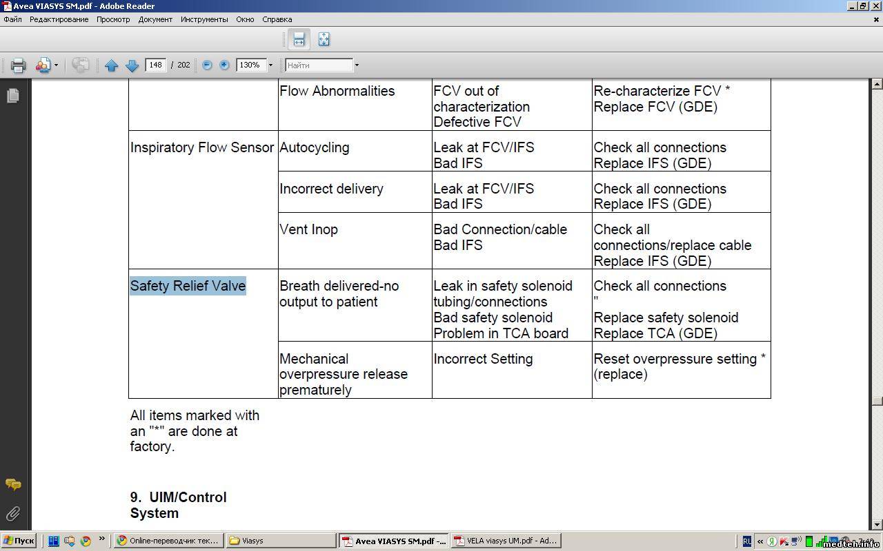 Добрый день. Аппарат AVEA фирмы VIASYS выдаёт аудиовизуальный сигнал тревоги Safety Valve Open (Предохранительный клапан открыт). Подскажите, пожалуйста, как устранить данную ошибку.