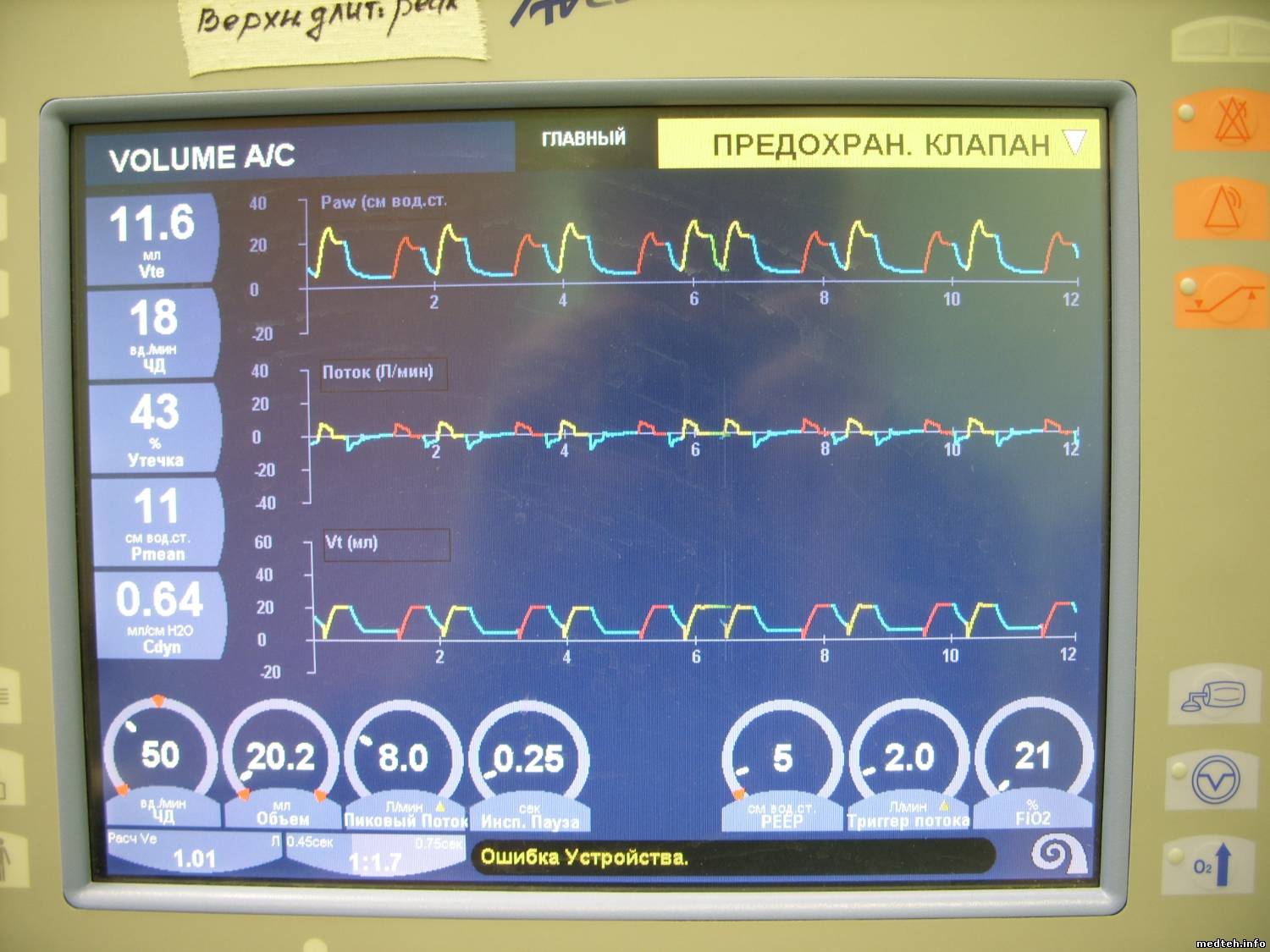 При работе аппарата выдает ошибку "Верх. длит. peak". Иногда может проработать около 3-х часов и выдать ошибку, а может и через 20 минут. После этого аппарат не запускается в работу, пишет "Длит. верх. peak", "откр. пред. клапан". При прохождении теста на герметичность, выдает всё ok, но всё равно не запускается и пишет те же ошибки. Так же проходит тест с отсоединенным датчиком патока от клапана выдоха (после возникновения ошибки верх. длит peak). Действия описанные в инструкции для этой ошибки результата не дали. Так же аппарат запускается после "отдыха"(время "отдыха" не нормировано может и через 20 минут, а может и на следующий день).