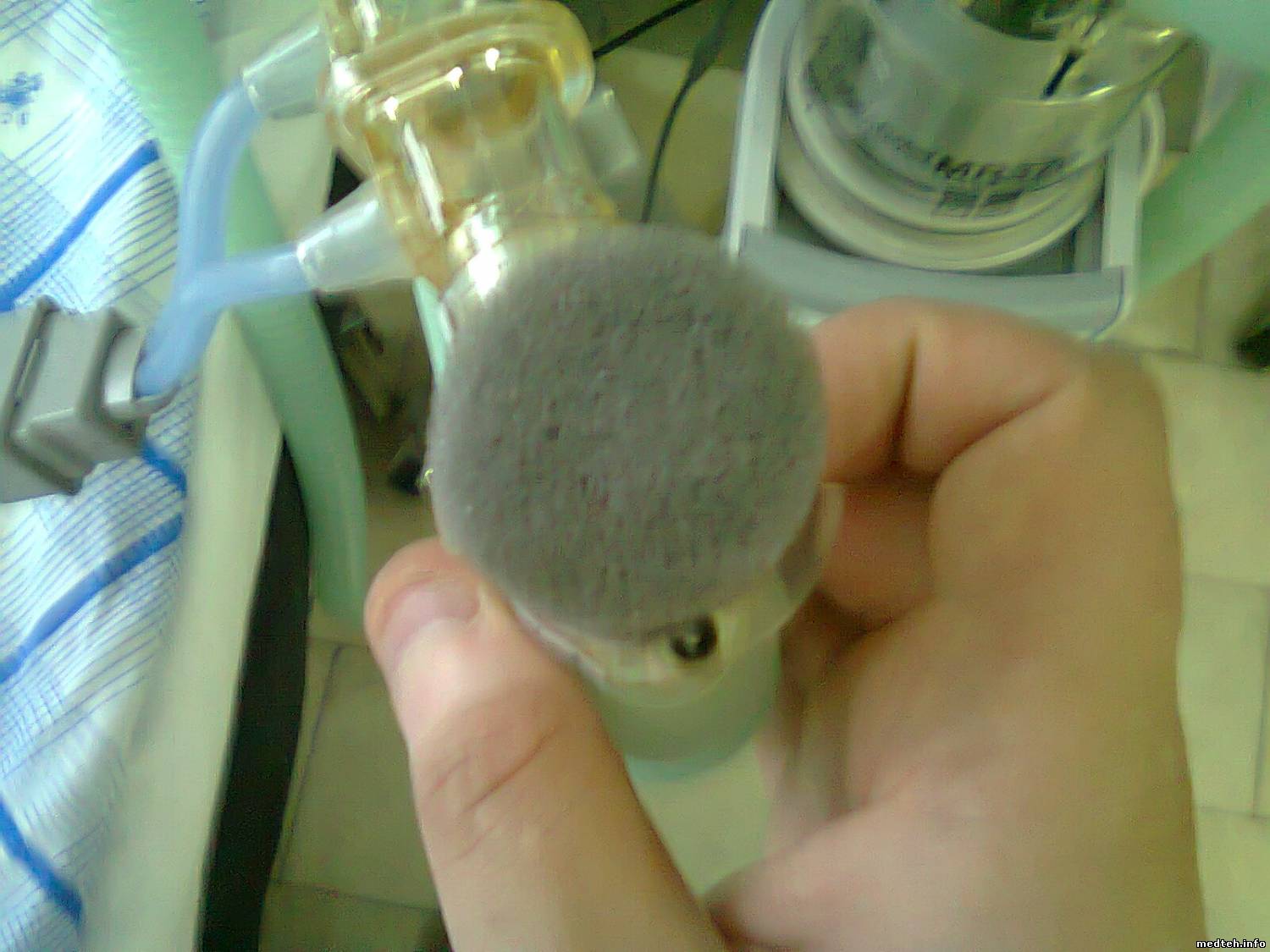 Откуда он там взялся - врачи не знают. Есть мнеее, что он с момента ввода в эксплуатацию там был. Так что либо вводившие в эксплуатацию нахалтурили, либо сами врачи что то напутали. И при все при том аппарат до постановки на консервацию (гоод с лишним назад) наработал под 200 часов... С заткнутым клапаном выдоха. Хорошо что не убил никого...