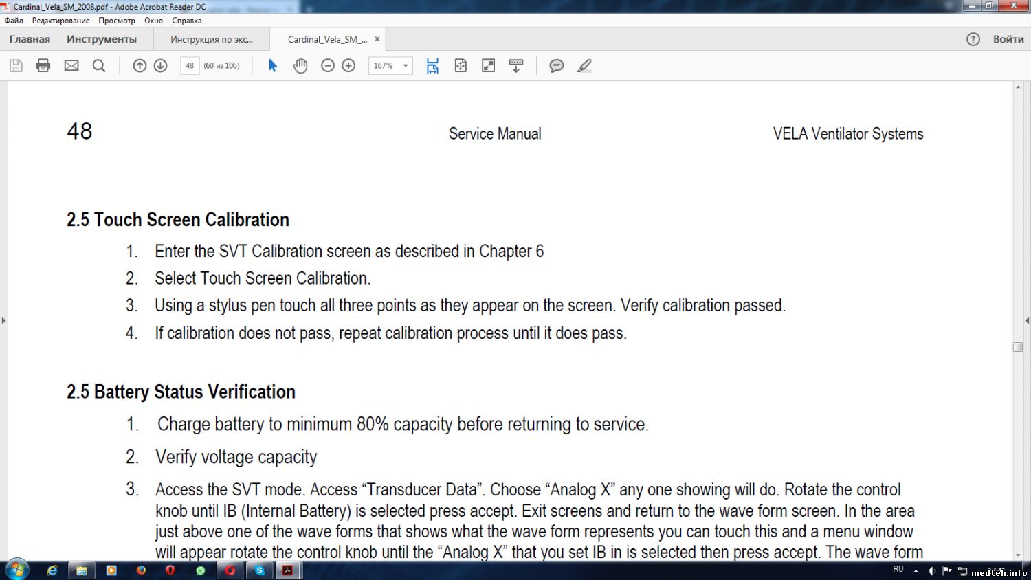 На ремонт поступил аппарат Viasys Vela "Уральского приборостроительного завода". Проблема заключается в том, что не проходит тестирование турбины "Turb Diff pressure XDCR test" и выдает "Turb Diff: 36 Failed". По коду ошибок этот код 36 не используется. Так же нет выбора режима вентиляции. Только режим Volume A/C (На что и жаловались). В дальнейшем было обнаружено, что аппарат не проходит калибровку "Turb Diff" давления турбины на 0 мм.вод.ст.(не укладывается в диапазон). Я понимаю так, что калибровка по давлению производится аппаратом по двум точкам, либо разность двух точек, либо их совпадение. Если Вы TiP_61 решили Вашу проблему с калибровкой выходного датчика (датчика выдоха), то подскажите в чем у Вас была загвоздка, может поможет и мне. Заранее Всех Благодарю.