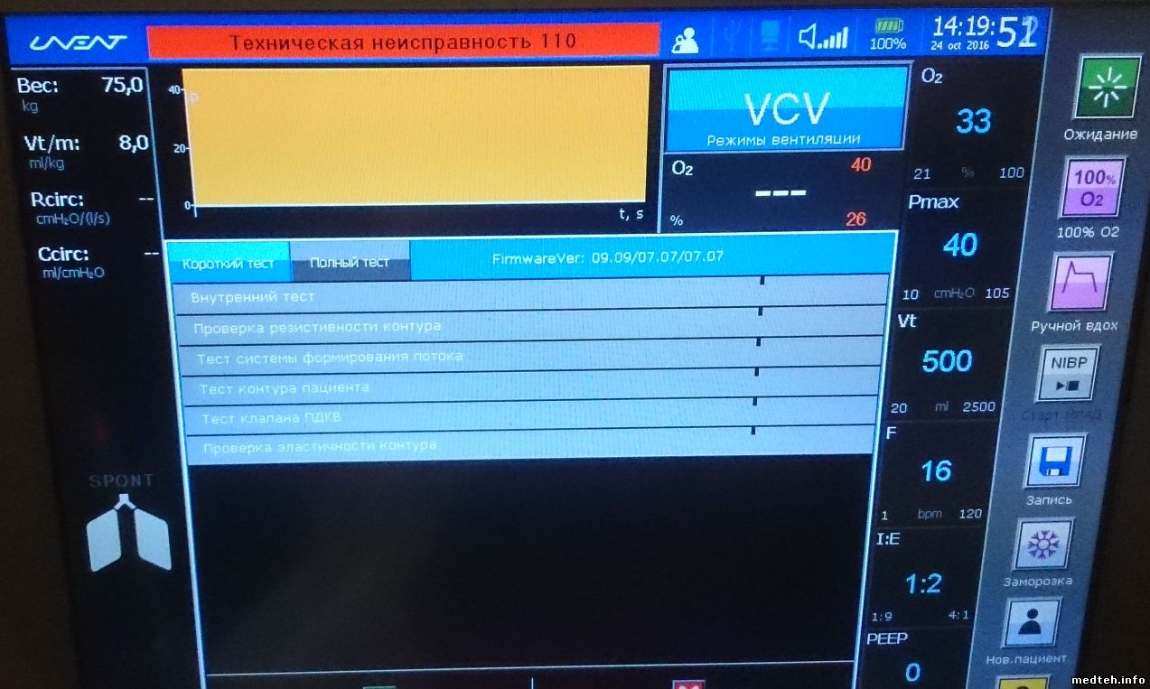 Попался нам такой ИВЛ - выдаёт ошибку 110 (сам аппарат перестал качать воздух через пациента, компрессор работает). Никто не может подсказать что там может быть ? К официалам пока не обращался (как там кстати с сервисом ?). Мне кажется там залип впускной клапан или какие-нибудь датчики испортились.