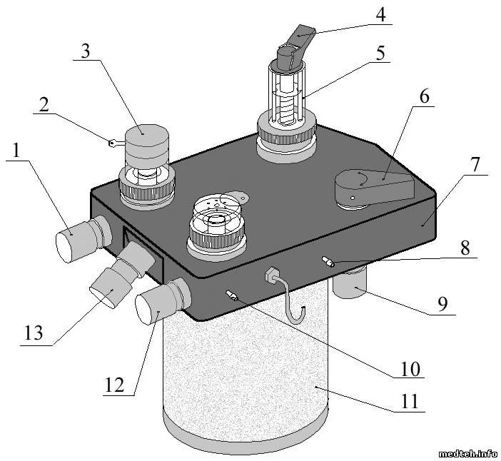 Ротаметры предназначены для составления нужной газовой смеси. На некоторых наркозных аппаратах используется пневматический привод по воздуху или по кислороду. Такие аппараты без наличия приводящего газа работать не могут. У МК-1 привод электрический. По-этому он может работать даже если вообще отсутствуют внешние газы (если не обращать внимание на тревогу).