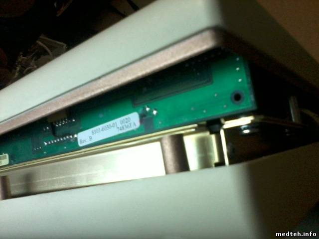да, я по мануалу смотрел, по идее должно быть, но а этом варианте исполнения аппарата я не нашел на задней стороне... линейка должна быть в нише слева на задней крышке монитора? если так, то ее там нет. я вскрывал плату процессора на нижнем блоке, осматривал плату, она без выгоревших элементов. вот на ней есть линейка из 9-ти светодиодов. при включении аппарата они все засвечиваются, затем горит постоянно верхний, а остальные 8 начинают "бегать", видимо по опросу проца системы.