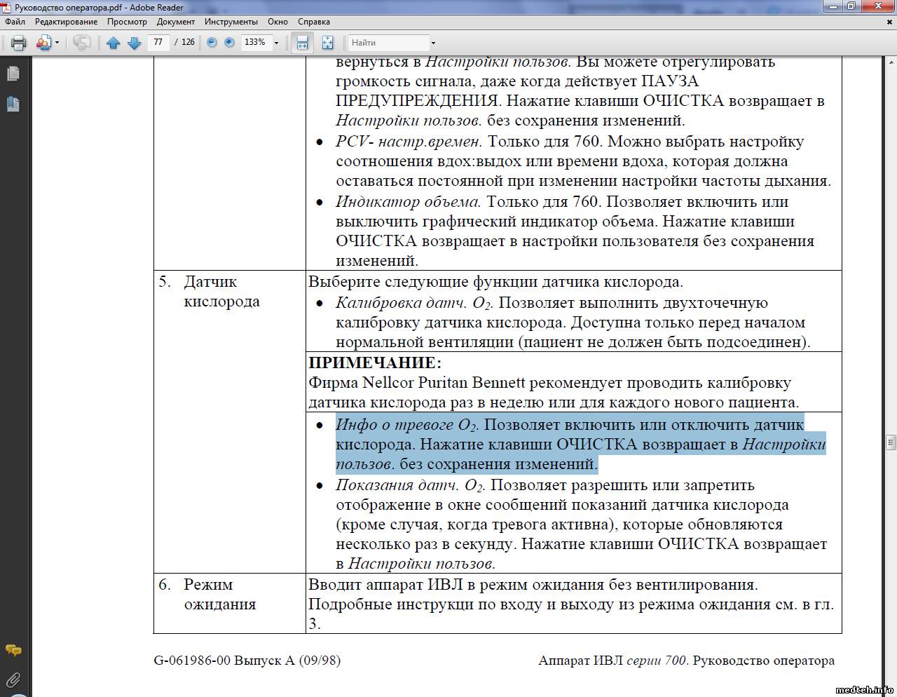 Работаю по своей теме, а тут в больнице меня просят помочь по непрофильной мне теме, по PB 760 и PB 840. 760 №1. Подскажите, как отключить тревогу датчика кисродода? Через серв. меню не получается (нажатие MENU). У врачей дохлый датчик, кажет 158%, калибровку не проходит. 760 №2. Ошибка 9135. Тем-ра в палате +25С. Дело в термодатчике обдува, что справа? Если вместо него ставить, то какой номинал сопротивления должен быть? Трубка между д.потока и трансдуктором давления в поряде. Менял верхнюю плату соленоидов, ошибка остается. 840. Монитор не светит. Тревога высшего приоритета. В вентиляцию запускается, мех качает. Если физраствор попал на верхнюю длинную плату подсветки монитора (или тачскрин?) в граф. интерфейсе (визуально наблюдаю выгоревший резистор и разводы на плате), то надо тараканить весь прибор на ремонт в Москоу?