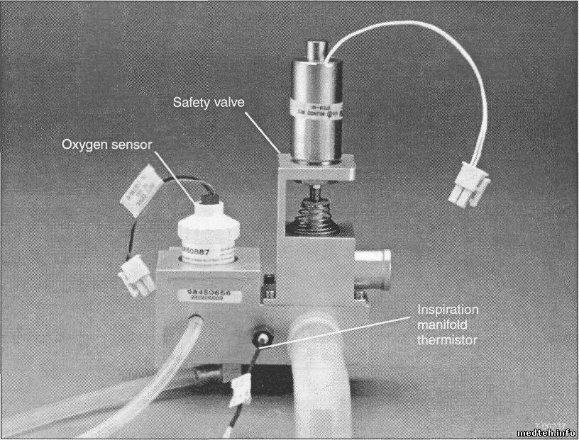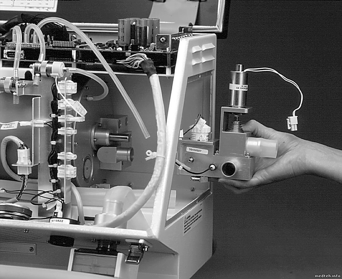 Сопротивления соленоидов кислорода низкого потока - 95 - 126Ω, высокого потока - 36 - 51Ω. А вообще узел должен быть заменен каждые 15000 часов работы.