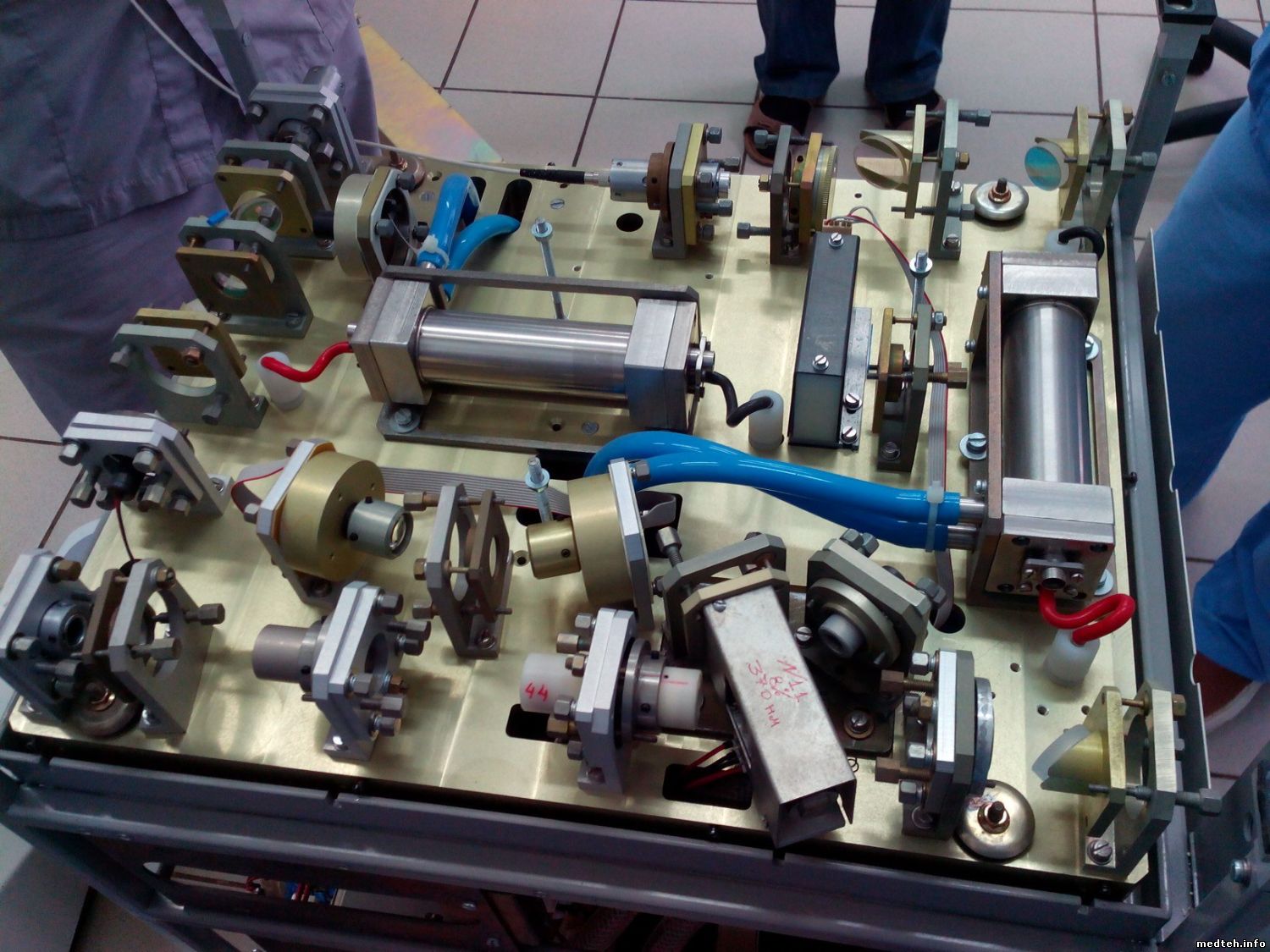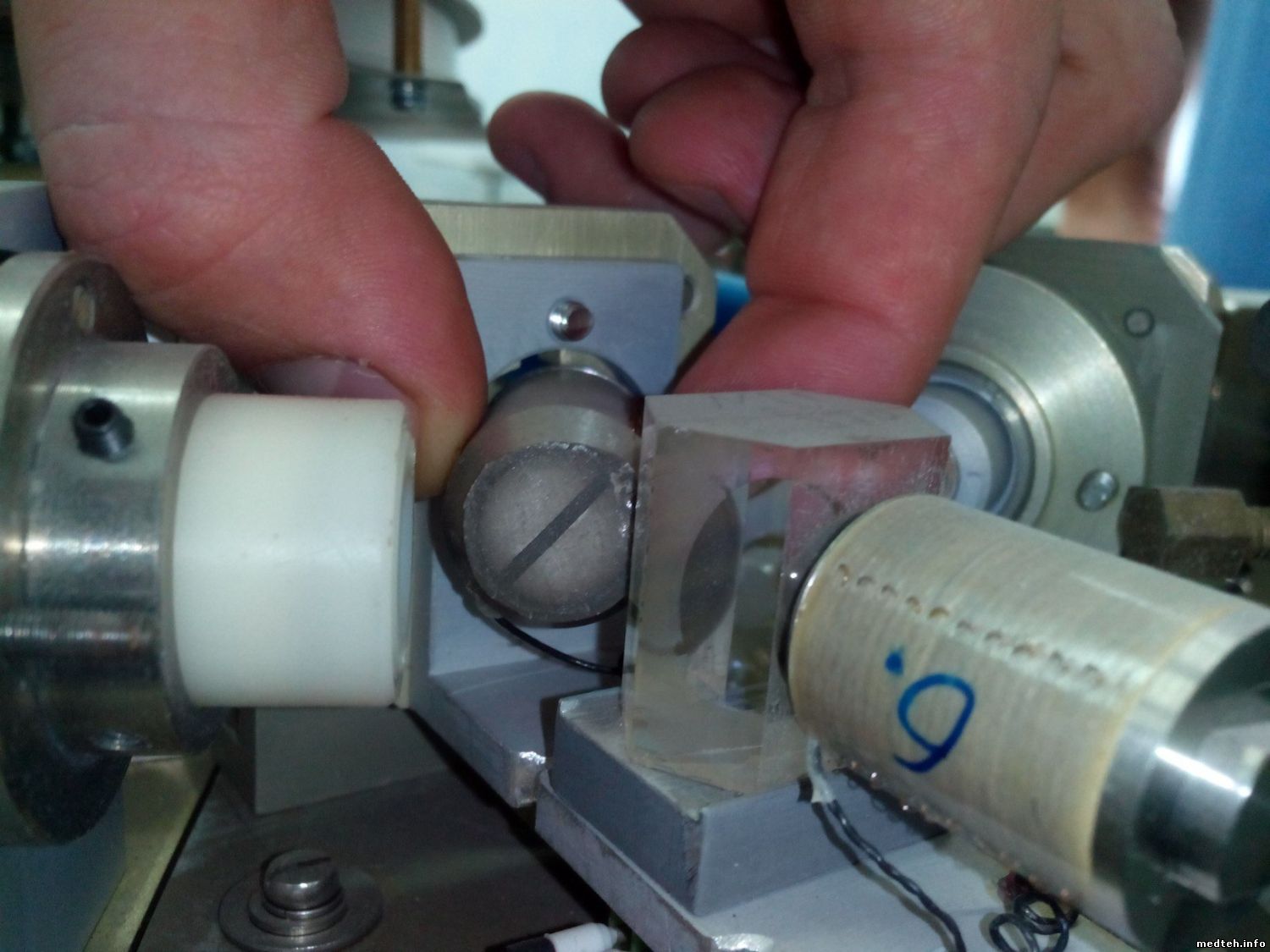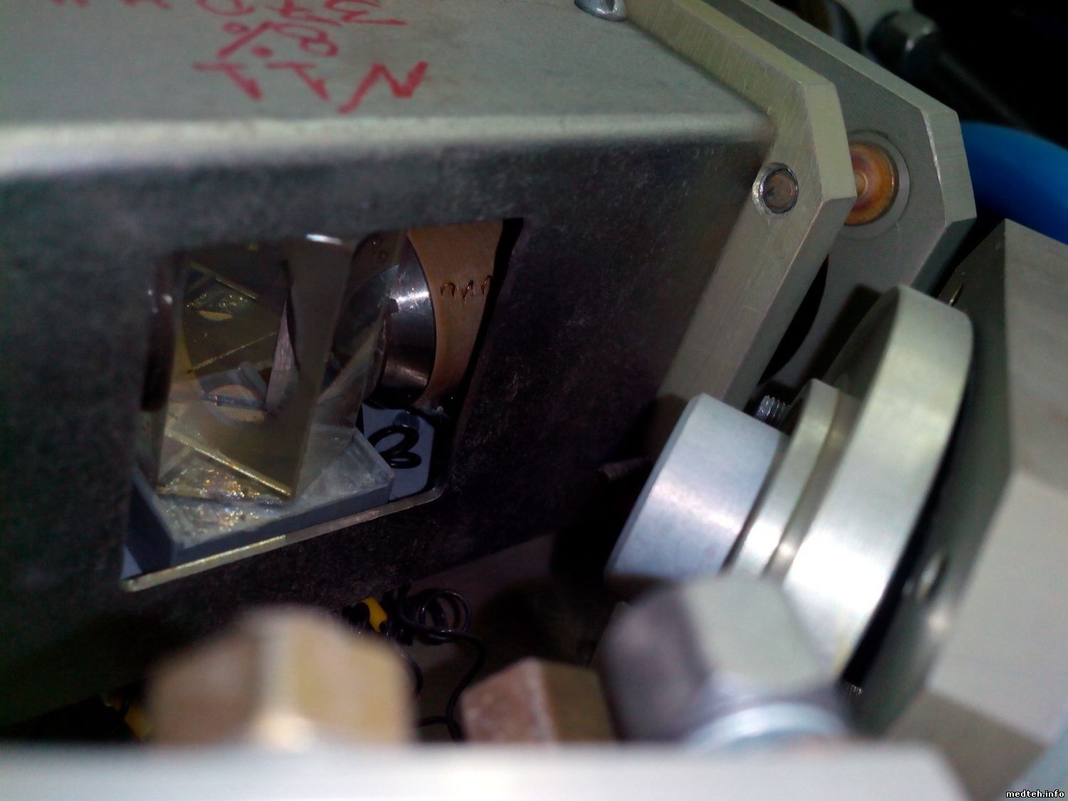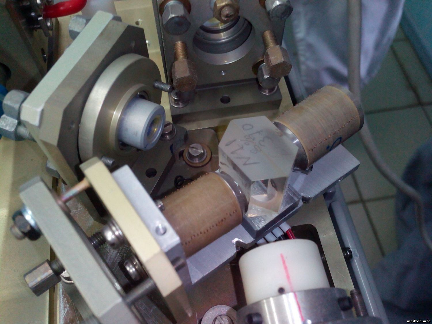 Аппарат Лазурит, не работает литотриптер (скальпель работает). В стакане с водой световод на камне дает зеленые вспышки света, "всхлопывание" появляется 3-4 раза из 50 импульсов лазера, должно быть один к одному. Пилотный лазер работает. Световод исправен (взяли новый), используют всегда по инструкции. Вскрыли крышку, обнаружили что есть на пути лазера призма. В нее сводится пилот и основной лазер (это понятно). На призме есть 2 катушки (вероятно пьезоизлучатели), приклеены к кристаллу по торцам, перпендикулярно лазерному пучку. Одна катушка отвалилась, и лежит рядом. Торец призмы, где приклеена была катушка, отшлифован до матовой поверхности. 1) Неизвестно материал и основной функционал призмы - чисто теоретически, после призмы появляется зеленый свет (лазер на алюмоитриевом гранате легированный неодимом, длинна 1,06 мкм), после линзы 537 нм, и второе функционал призмы как удвоитель частоты и мощности лазера, тогда вероятнее всего без отпавшей катушки мощности не будет. На практике же неизвестно (не дали включить в открытом состоянии лазер) излучение лазер из накачки зеленного цвета или на призме это происходит, также неизвестен материал призмы (так как якобы такие призмы (удвоители) должны быть закрыты от внешнего воздействия влажности, которая может агрессивно воздействовать на кристалл и разрушать его, наша же призма установлена в открытом в виде). 2) так как неизвестен материал призмы, неизвестно чем клеить катушку - боюсь что например эпоксидка "съест" кристалл, поэтому нужно знать материал кристалла. Перед сборкой аппарата катушку приложил максимально близко к приклеиваемой поверхности, после сборки проверили, "всхлопывание" стало появляться 1 раз на каждые 3-4 импульса, что значительно чаще. Поставщик этого оборудования (ЛТМ) на базе ИОФ РАН (которые и спроектрировали этот аппарат), не совсем хорошо идет на контакт, вместо того чтобы проконсультировать по призме, предложили свои услуги причем в 3 этапа: диагностика, демонтаж призмы и ремонт призмы в москве, и последующий монтаж у нас. Короче одеяло тянут на себя.