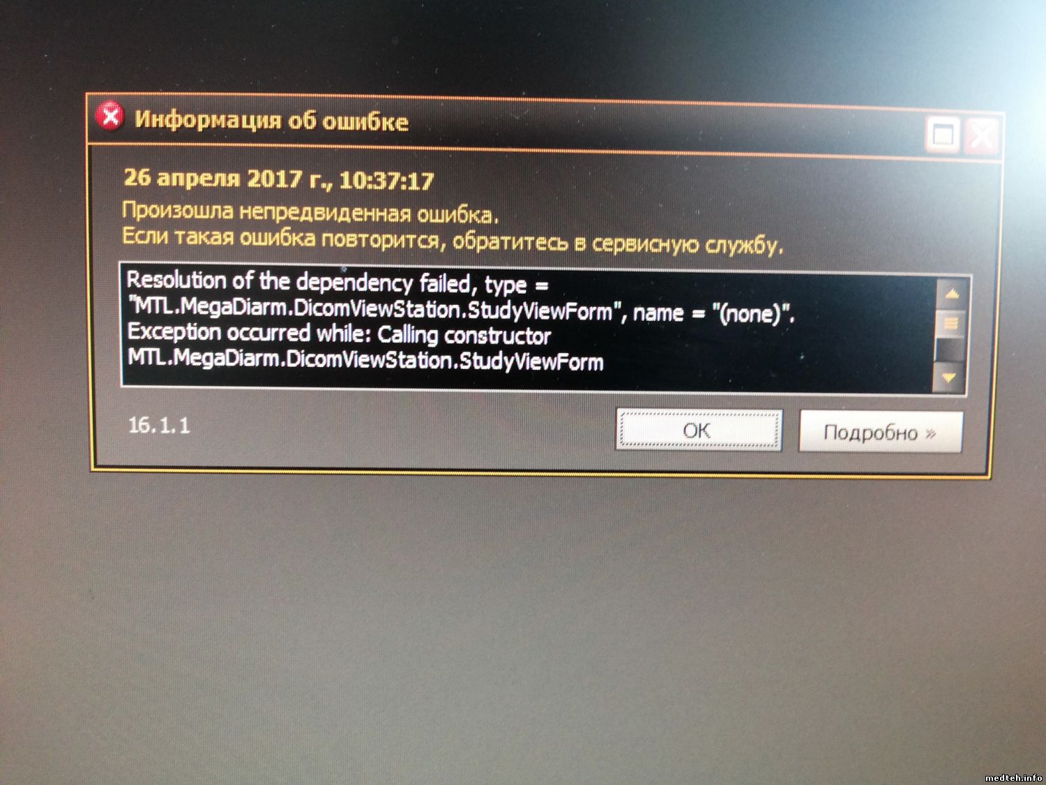 Resolution of the dependency failed, type = “MTL.MegaDiarm.DicomViewStation.StudyViewForm”, name = ”(none)”. Exception occurred while: Calling Constructor MTL.MegaDiarm.DicomViewStation.StudyViewForm (Microsoft.Practices.Umity.IUnityContainerContainer, MTL.MegaDiarm.UI.Services.IShell shell, MTL. MegaDiarm. DicomViewStation.CondusionHelper condasionHelper, MTL.MegaDiarm.DicomViewStation. DicomStudyViewContext context). Exception is : ResolutionFailedExeptionResolution of the dependency failed, type = “MTL.MegaDiarm.DicomViewStation.ImagesSection”, name = “(none)”, Exception occurred while: Calling Constructor MTL.MegaDiarm.DicomViewStation.ImagesSection (Microsoft.Practices.Unity.IUnityContainer container, MTL.MegaDiarm.UI.Services.IShell shell, MTL.MegaDiarm.DicomData.IPersistentBlobStorage blobStorage, MTL.MegaDiarm.Dicom.IAnonymizationService anonymizer, MTL.MegaDiarm.DicomCDService.IDicomCDWriterGuiService dicomCDService, MTL.MegaDiarm.DicomViewStation.CondusionHelper condusionHelper, MTL.MegaDiarm.DicomViewStation.DicomStudyViewContext context). Exceptionis: FormatException – UnknownVR:’