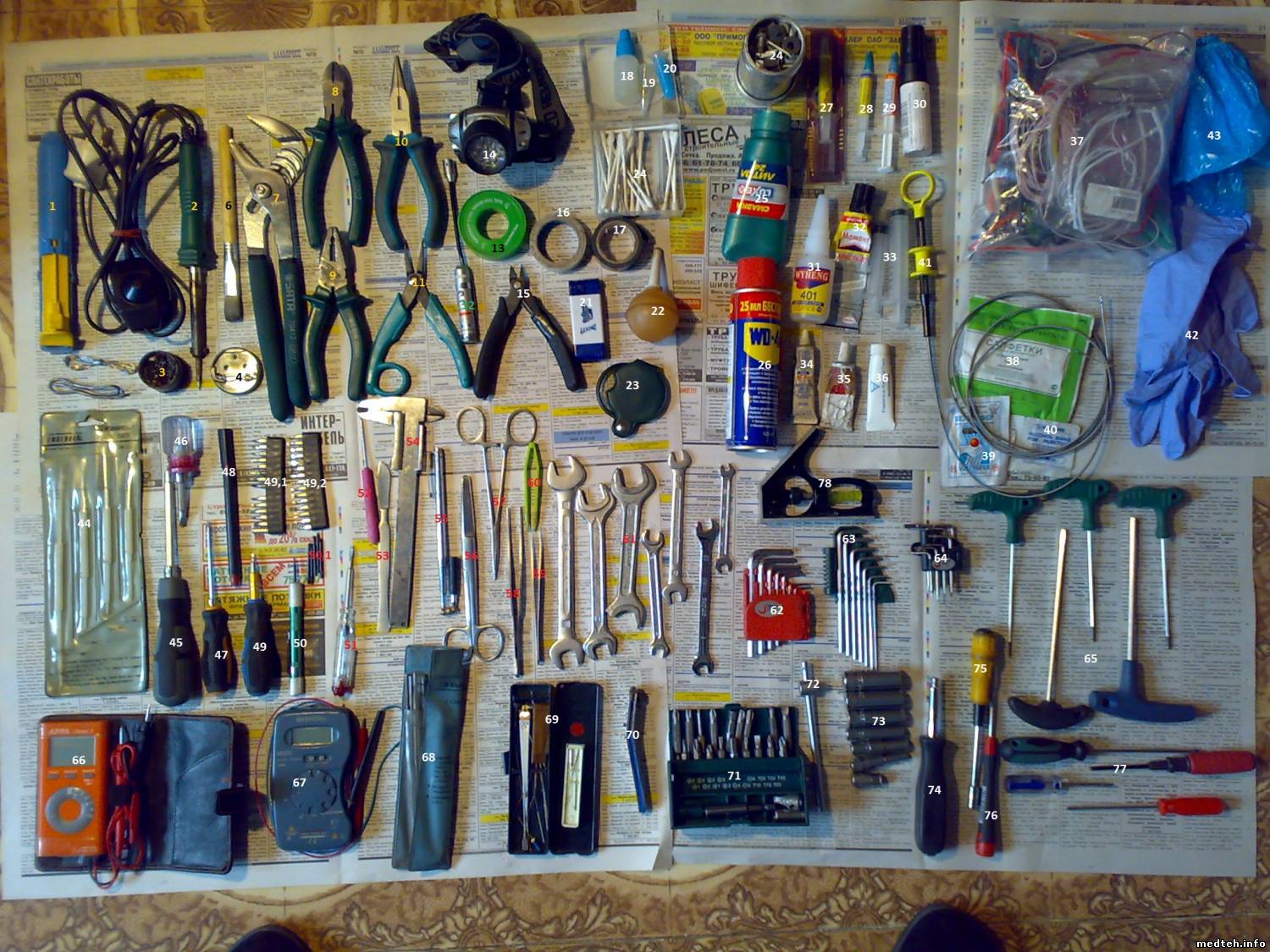 Привет всем про разнообразные ключи и отвертки говорили очень много настольная лампа с 100 ватт лампой и переноска 20 метров всегда со мной когда возле рентгена почему то в рентген кабинетах не любят свет а особенно в проявочных и нужно посмотреть проявочную машинку кодак например а доступ только с низу