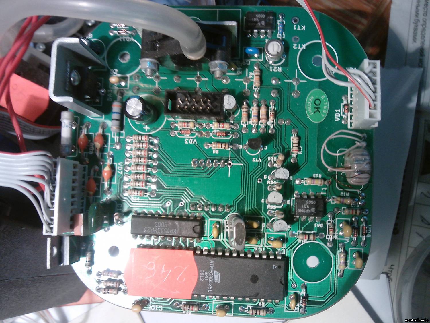 На отключение датчика переполнения реагирует(неп).Таймер выставляется и срабатывает.Режим максимального вакуума,судя по загоранию светодиода,выставляется.В режиме непрерывной аспирации кнопками+- фиксированные значения не устанавливаются,истинная величина вакуума не отображается.Датчик давления вроде живой,подключен к КР1446.На вых. КР при пережатии трубки напряжение с 2.5 растет до 5в.Может кто сталкивался или есть схема.Гугля не помог.