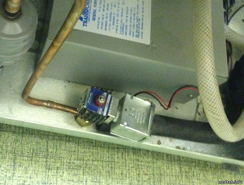 "красный кран" - низкий уровень охлаждайки. Охлаждайка - раствор Хлорамина-Т в дистиллированной воде, 286ppm. Чтобы нечисть не заводилась. Можете смело долить просто водой. Сименс раньше вообще дистиллят заливал ( но в нем у меня разок завелась какая-то погань бактериальная, на слизь похожая. забила фильтр на Клювере), а сейчас льют воду из-под крана.
