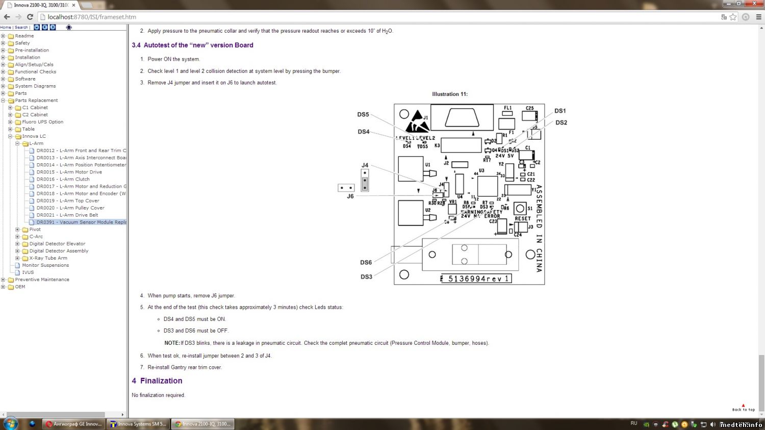 Innova 3100. На мониторе все время горит детектор, как будто произошёл detector collision. Соответственно, сами датчики столкновений на детекторе рабочие. Закоротил их сначала на самом детекторе, потом вызвонил, что они идут в technical room, на плату backplane board, это кросс плата. Поставил перемычки на самой плате, все равно детектор горит. С платой растерялся анализировать.