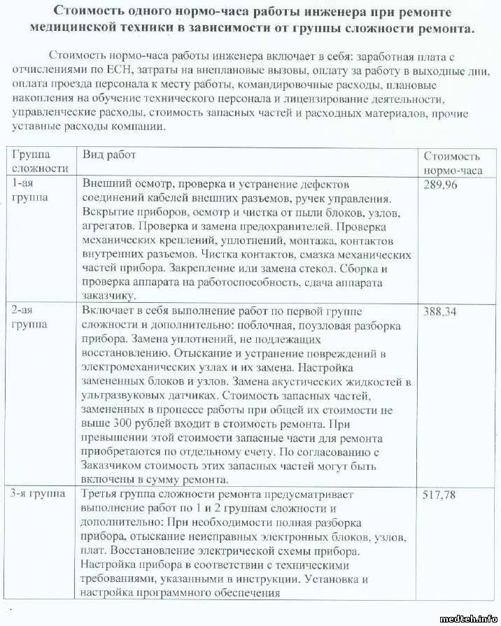 3. ТО медтехники выполняется по прейскуранту (№ к сожалению не помню (№ 26-05-85, часть I - уточнил МВР), но точно знаю, у нас одна из компаний им пользуется). При этом, чем старше аппарат, тем выше стоимость ТО.