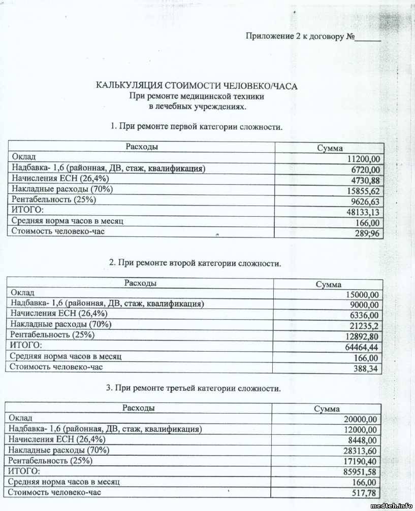 При расчётах за основу берут стоимость единицы медицинской техники помноженную на коэффициент.