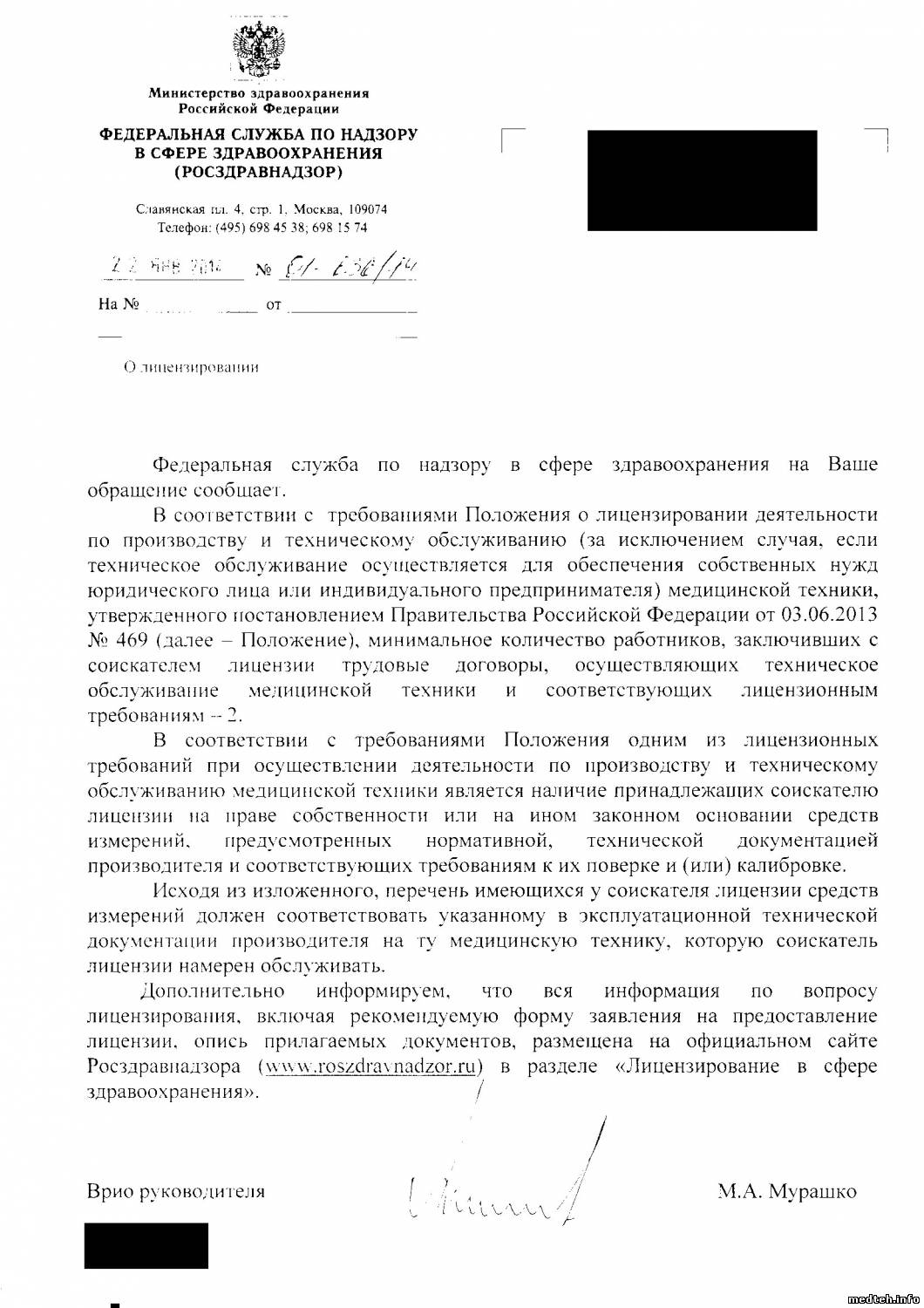 Сегодня получил ответ из Росздравнадзора по аналогичным вопросам: