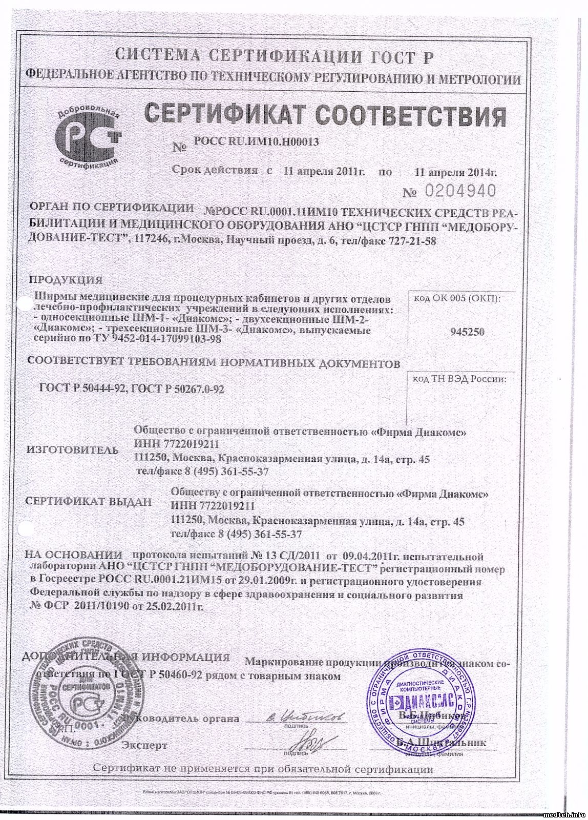 Сертификаты соответствия